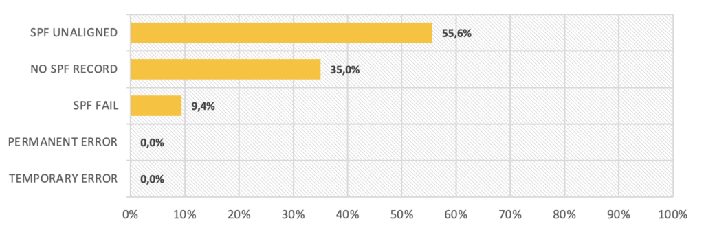 Durant l’été, 417 e-mails remontent un problème d’alignement SPF, 71 e-mails remontent SPF en échec et 263 e-mails remontent un problème d’authentification SPF.