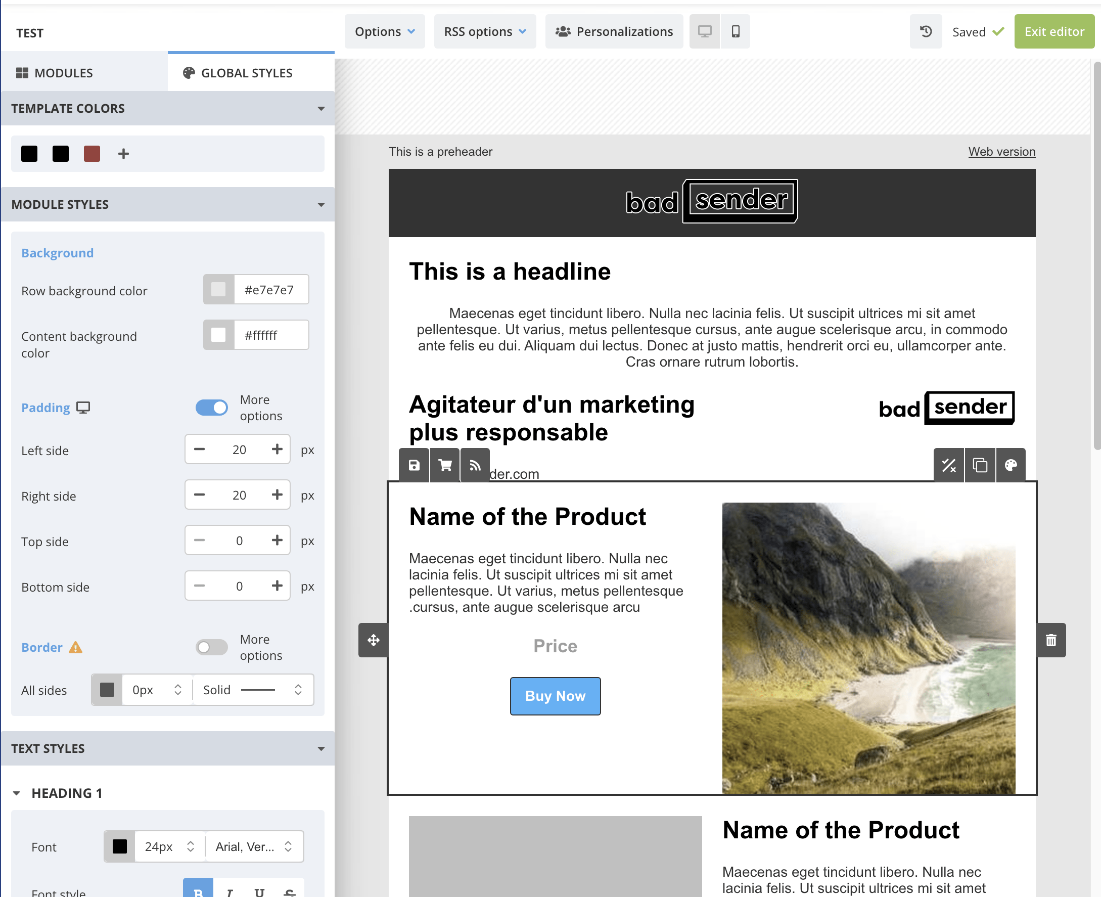 Bref, c’est personnalisable, on peut enregistrer son travail pour le récupérer, on peut utiliser les données présentes dans Actito. Ça fonctionne plutôt bien !
