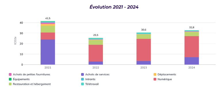 En 2024, nos émissions globales sont de 33 tonnes CO2e. En 2023, elles étaient de 31 tonnes CO2e.