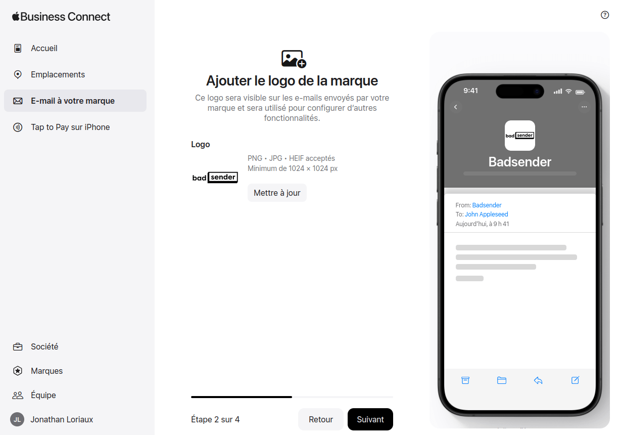Apple Branded Email allows you toassociate the addresses that send your commercial emails with your logo. This way, your recipients can immediately identify your messages when browsing the list of received emails.